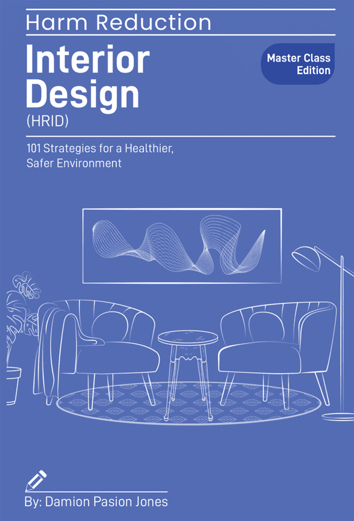 Harm Reduction Interior Design: 101 Strategies for a Healthier, Safer Environment is available at www.101Ways2HarmReduction.com from September 1, 2025, at a heavily discounted price on the book platform. The book will be available at Barnes and Noble, Amazon, Temu, Lulu, and Ingramspark after October 31, 2025.