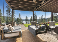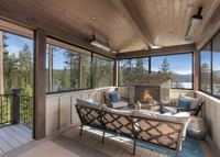 Landscaping by Yochum Landscaping in Coeur d’Alene features a stream that originates at the front of the house, travels to the left under the bridgeway that leads to the front door and winds around the side of the house. Deer and wild turkeys often drink from the tumbling waterfalls sparkling in the sunshine, but “Shannon really designed it more for the sound,” says Bedford, noting that it fosters a relaxing ambiance in the nearby screened in porch.